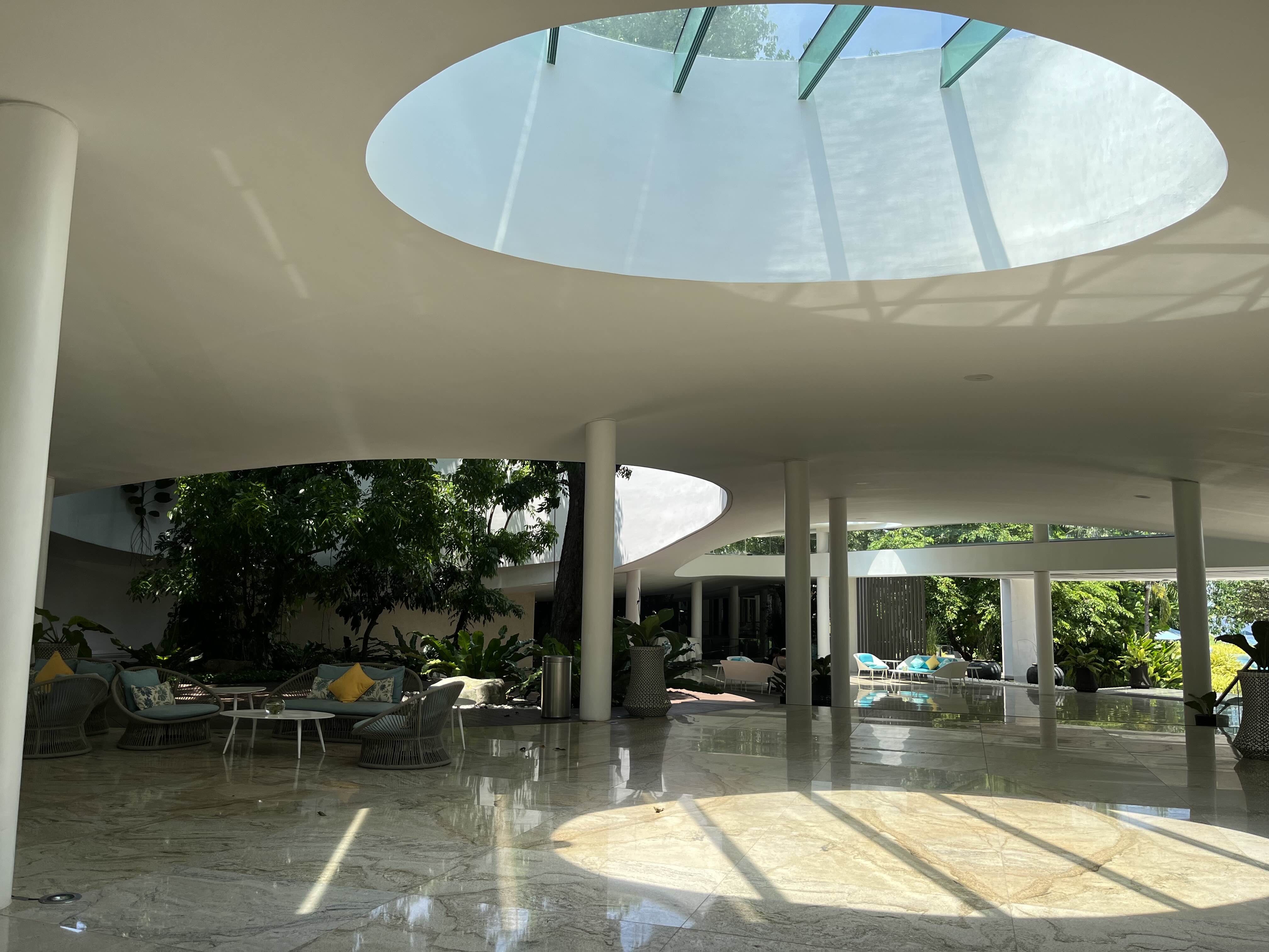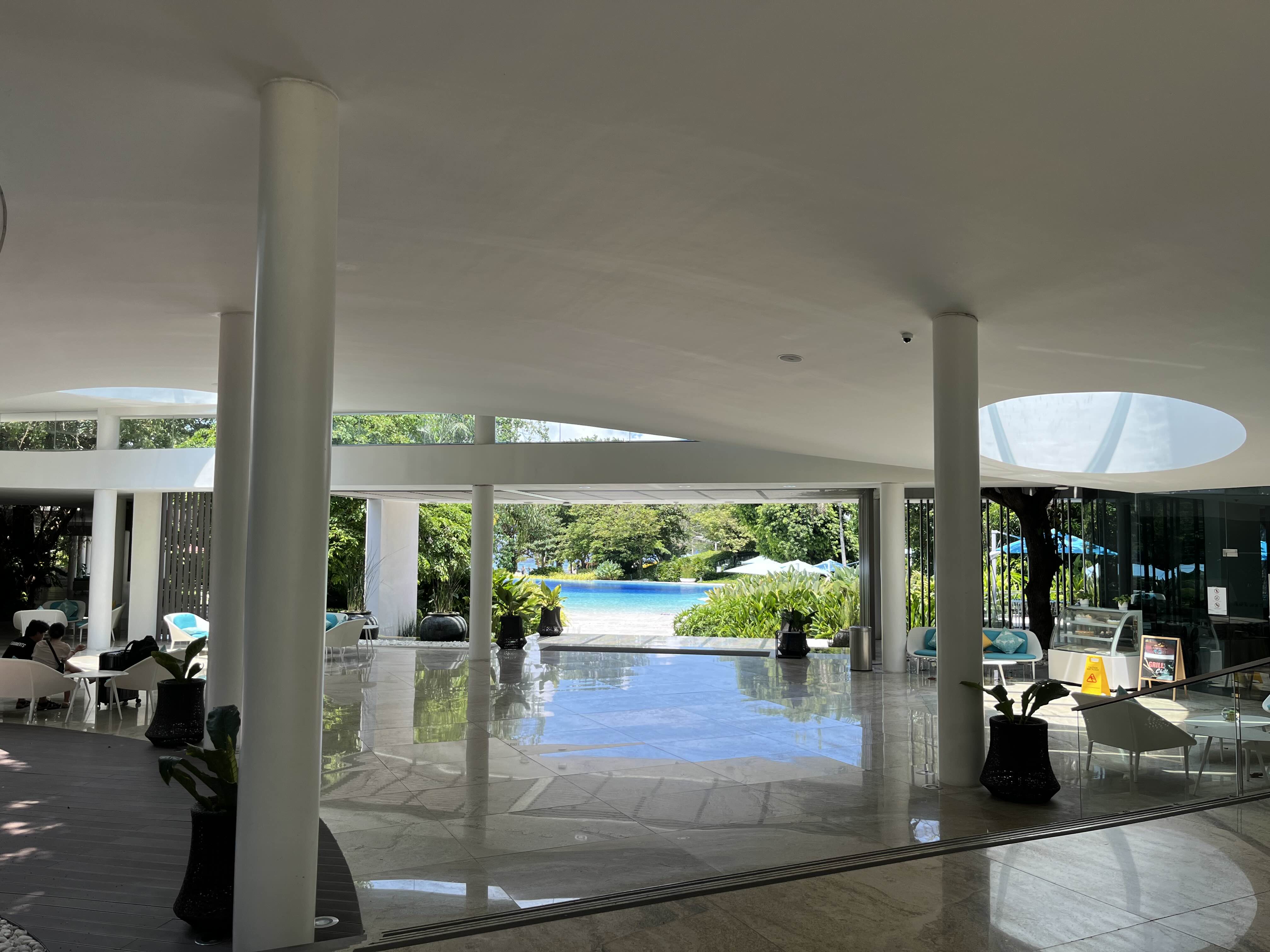 ํ๋ถ๋ฆฌ ๋ฆฌ์กฐํธ์ ๋์ฐฉํ๋ฉด ๋ณด์ด๋ ๋ก๋น ๋ทฐ.