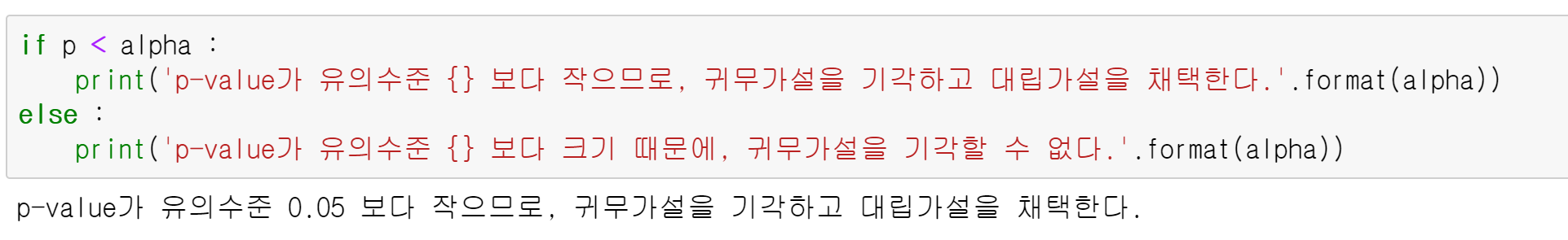 p-value๊ฐ ์ ์์์ค๋ณด๋ค ์์ ๊ฒฝ์ฐ, ๊ท๋ฌด๊ฐ์ค์ ๊ธฐ๊ฐํ๊ณ ๋๋ฆฝ๊ฐ์ค์ ์ฑํํฉ๋๋ค.